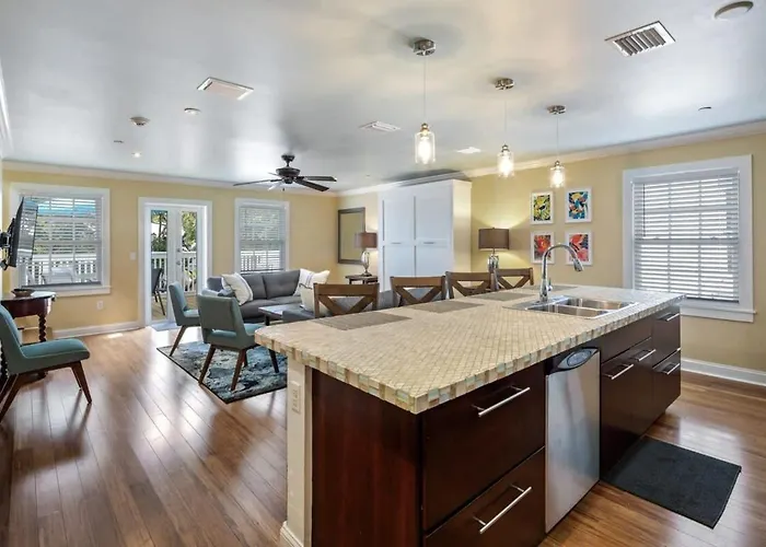 Cloud Suite On Duval se destaca por su impresionante diseño inspirado en las Islas del Caribe y su ambiente acogedor. Este elegante alojamiento cuenta con apartamentos climatizados de dos habitaciones, perfectos para disfrutar de la comodidad y la privacidad durante tu estancia. Cada unidad está equipada con televisión por cable, lavadora y una cocina completa, brindando la posibilidad de preparar tus platos favoritos utilizando ingredientes frescos y locales.